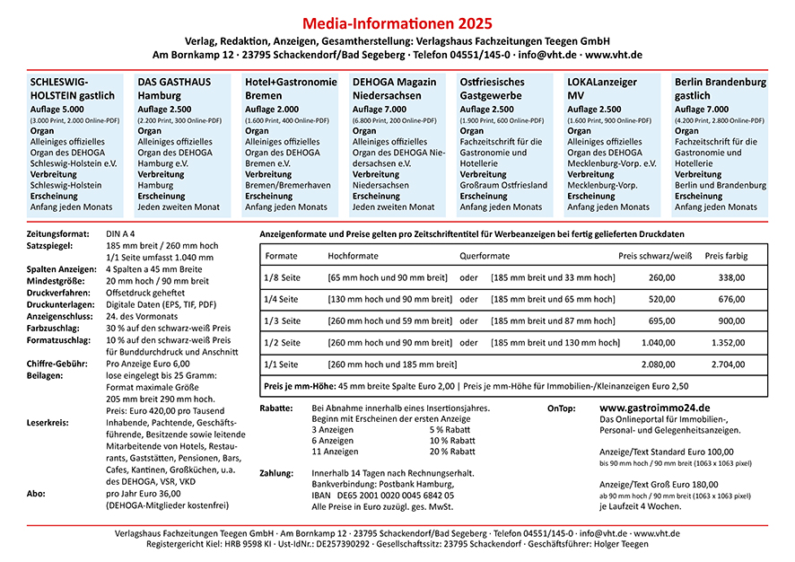 Fachzeitschrift für die Gastronomie und Hotellerie in Schleswig-Holstein. Aktuelles, News und Informationen aus der Branche des Landes und Berichten über die Aktivitäten der DEHOGA-Organisationen